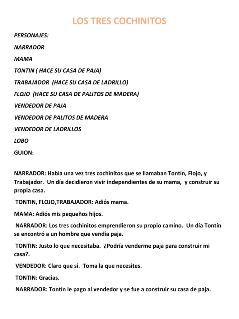 El narrador es omnisciente de modo que el problema es totalmente externo a él debido a que éste no se relaciona de ninguna manera con los personajes que se describen en la. Dale otra dimensión a la hora del cuento con estas marionetas de dedo que hará que los peques se queden embelesados. El cerdito Práctico tenía unas virtudes más sólidas y no hacia nada más que preocuparse por salvar a sus hermanos del Lobo Feroz.